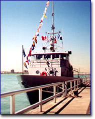 Built by Marinette Marine in Marinette, Wisconsin in 1985, she was one of ten 120-foot type Torpedo Weapons Retrievers. Designated USS Swampfox TWR 825, she was originally used to launch and retrieve test torpedoes and targets. It was assigned to the U.S. Navy Atlantic Undersea Testing and evaluation Center (AUTEC), Andros Island, Bahamas. Due to the changing development of underwater weapons, TWR 825 was no longer needed by the Navy. The ship was taken to Green Cove Springs, Florida, and placed into mothballs in 1995. It was here that the vessel was discovered by an enterprising group of sponsors who decided the Sea Cadets needed a ship to train on. A request was then made to the Secretary of the Navy to have her transferred to the Naval Sea Cadet Corps. Paperwork was set into motion, and TWR 825 was obtained on August 15, 1997. A group of 15 dedicated volunteers brought the vessel up from Florida. She arrived in Port Huron, Michigan on August 26, 1997 to a group of excited and anxious onlookers. Since she had been cold and quiet for some time, the Grayfox needed a lot of attention. All of the torpedo rollers had to be removed from the after deck and returned to AUTEC. The ramp had to be welded over and she needed to be chipped and painted. Most of her systems required attention in one form or another. After a long winter of hard work by the cadets and volunteers, she was finally starting to look like a Cadet ship. She was commissioned the United States Naval Sea Cadet Ship (USNSCS) Grayfox on 26 April 1998 at Hart Plaza in Detroit, MI, following services held at Mariners Church by the Reverend Richard Ingalls. The Christening Sponsor was Mrs. Jack Kennedy, wife of the former National President of the U.S. Navy League. She is now moored in Port Huron, Michigan. At present time, the ship has berthing for 30 cadets and 7 officers. Our large berthing capacity is due to the extension of the main cabin. Because of this extension, the Grayfox is now accessible to all Cadets, male and female, for training. |